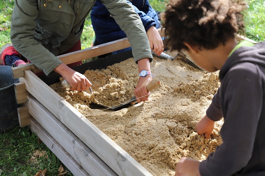 Comment fouille-t-on, avec quoi et pourquoi ? Muni d’outils, notamment d’une truelle, les enfants s’installeront dans le grand bac de fouille extérieur pour rechercher des vestiges. Différents objets seront mis au jour et étudiés par les archéologues en herbe… surprise !